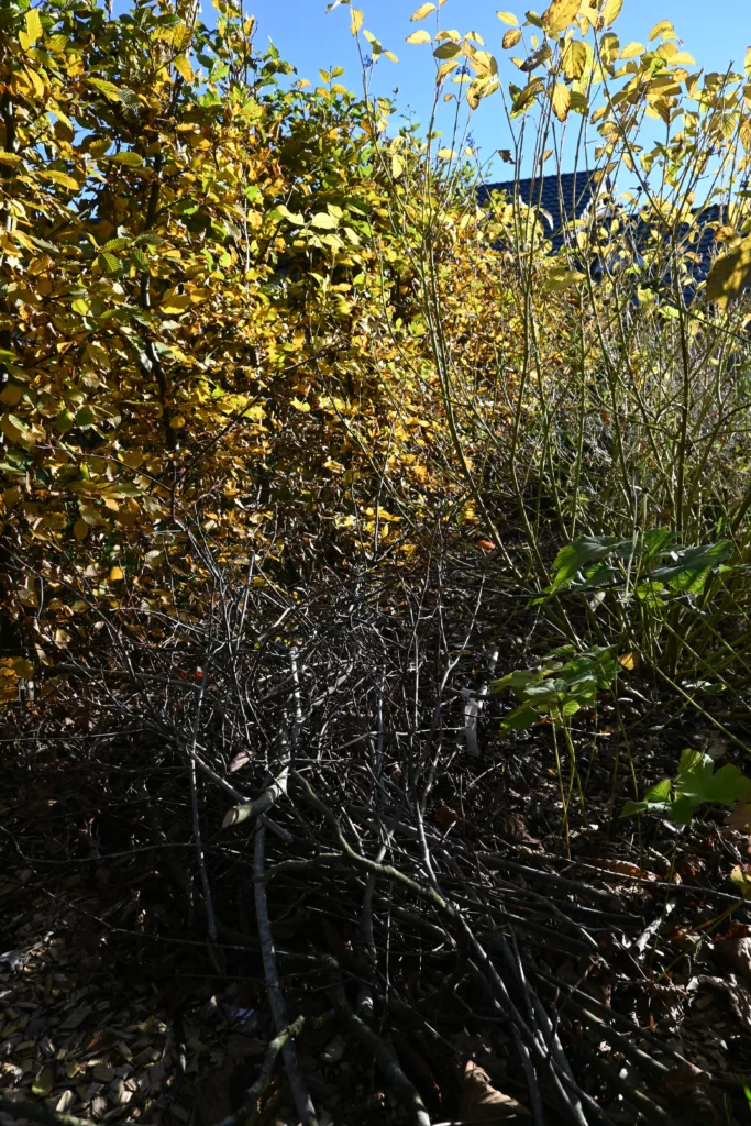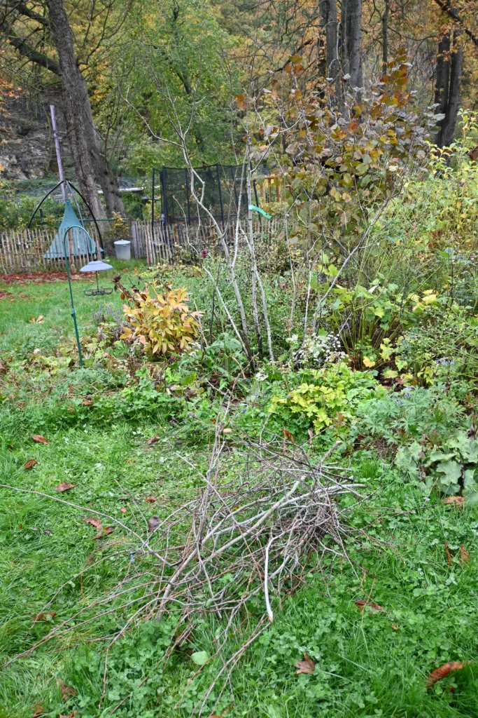 À la fin, j’ai rassemblé les branches coupées pour les déposer derrière un buisson, à l’arrière d’un massif fleuri.