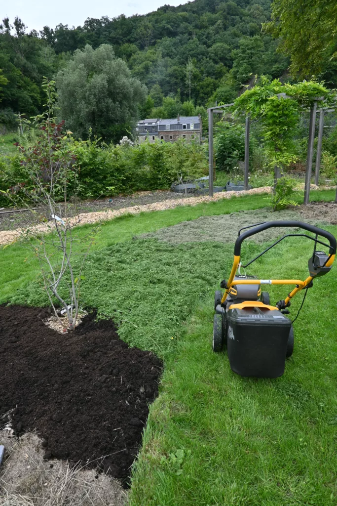 Je termine souvent par un paillage de BRF de feuillus, qui protège le sol et favorise l’activité de la microfaune.